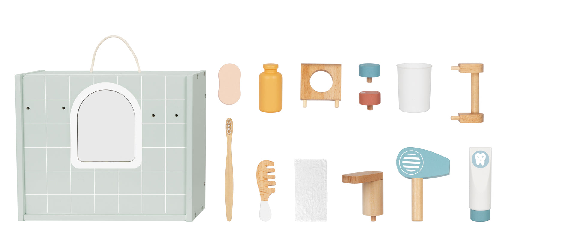 Featuring a brush, comb, mirror, and more, it encourages creativity, self-care routines, and fine motor skills.